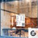 Une vignette blanche pour les heures d'ouverture de la fenêtre et un cling de fenêtre avec code QR, vos icônes de médias sociaux personnalisées et les coordonnées. Un accrochage personnalisé des vitrines pour les vitrines et les panneaux de portes d'entrée. Parfait pour un propriétaire de boutique d'affaires qui souhaite informer ses clients de ses horaires d'ouverture.