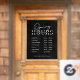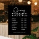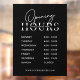 Modèle de décalcomanie de fenêtre d'heures d'ouverture d'entreprise minimaliste avec espace pour le nom de votre entreprise, les heures d'ouverture et le site Web sur fond noir. Ce décalcomanie de fenêtre d'entreprise éditable est un excellent moyen d'afficher vos jours et heures d'ouverture sur la vitrine de votre magasin - peut être utilisé pour votre café, restaurant, salon ou toute autre entreprise.
