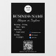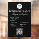 Conçu dans un style de script simple et moderne avec code Qr et réseaux sociaux. c'est parfait pour les cafés, les boutiques, les salons, les studios ou les bureaux qui apprécient une esthétique propre et minimaliste. Personnalisez facilement le nom de votre entreprise, le logo et les heures d'ouverture pour correspondre à votre marque. Idéal pour les portes ou les fenêtres en verre, donnant à votre entreprise une apparence soignée et accueillante.