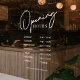 Autocollant Pour Fenêtre Heures d'ouverture d'entreprise blanches Script si