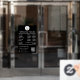 Un autocollant de fenêtre d'heures d'ouverture d'entreprise noir et un adhésif de fenêtre présentant le logo de l'entreprise, le code QR, vos icônes de médias sociaux personnalisés et les coordonnées. Un adhésif de fenêtre d'heures de magasin personnalisé parfait pour les vitrines et les panneaux de porte d'entrée. Parfait pour un propriétaire de magasin qui souhaite informer ses clients de ses heures d'ouverture.