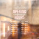 Horaires d'ouverture d'entreprise moderne modèle de cling de fenêtre, avec texte blanc et rose sur arrière - plan transparent. Cette vignette entièrement modifiable est un excellent moyen d'afficher les horaires d'ouverture de votre entreprise sur votre vitrine de magasin - peut être utilisé pour votre magasin, salon ou spa, café, restaurant ou toute autre entreprise.