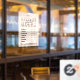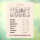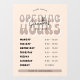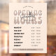 Modèle de décalque de fenêtre d'heures d'ouverture d'entreprise rétro beige dans un schéma de couleur crème neutre, avec des polices rétro et une mise en page moderne. Ce panneau d'heures d'ouverture modifiable comprend un espace pour le nom de votre entreprise, les heures de fonctionnement et les coordonnées. Affichez vos jours et heures d'ouverture sur la vitrine de votre magasin avec ce panneau de vinyle moderne pour vitrine - peut être utilisé pour votre salon de beauté, spa, magasin, boulangerie, bureau ou boutique.