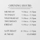 Élégant et simple autocollant pour fenêtre ou verre indiquant les heures d'ouverture de votre magasin, petite entreprise ou bureau.