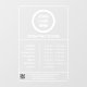 Faites une déclaration avec notre film de fenêtre à heures d'ouverture transparent et polyvalent avec un texte blanc croquant. Avec sa bordure à coins arrondis, son logo personnalisable et son code QR, ce film offre une apparence propre et moderne pour votre vitrine.
