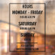 Autocollant Pour Fenêtre Heures d'ouverture personnalisées de la boutique O