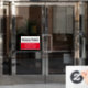 Ce film adhésif pour vitres est rouge vif, noir et blanc. Vous pouvez modifier le texte pour répondre à vos besoins. Vous pouvez vouloir afficher un message personnalisé tel que votre service, le nom de votre entreprise et vos heures d'ouverture. La moitié supérieure est blanche avec une ligne de texte noir en gros caractères. La moitié inférieure est rouge vif avec trois lignes de texte blanc.