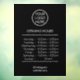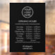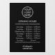Un logo personnalisé simple heures d'ouverture d'entreprise vinyle fenêtre accrocher le modèle d'écriteau dans un style minimaliste moderne sur un arrière - plan noir. Ce modèle polyvalent vous permet de concevoir facilement une liste d'heures d'ouverture personnalisée pour votre magasin, salon, restaurant, café ou toute autre entreprise.