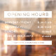 Horaires d'ouverture fermeture de fenêtre avec texte blanc ou personnalisé sur un arrière - plan transparent. Les couleurs et les polices peuvent être modifiées à l'aide de l'outil de conception.