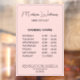 Accueillez vos clients avec style en utilisant cette pochette de fenêtre adhésive pour les heures d'ouverture d'un coiffeur de couleur rose moderne. Caractérisée par une typographie élégante et un fond rose doux, cette conception comprend un espace pour personnaliser le nom de votre entreprise, les heures d'ouverture et les coordonnées. Parfait pour les portes ou les fenêtres de salon, c'est un moyen facile d'afficher vos disponibilités tout en gardant votre marque cohérente et professionnelle. Idéal pour les salons, les studios et les professionnels de la beauté qui veulent faire une excellente première impression !