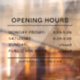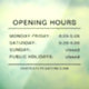 Horaires d'ouverture fermeture de fenêtre avec du texte en couleur noir ou personnalisé sur un arrière - plan transparent. Les couleurs et les polices peuvent être modifiées à l'aide de l'outil de conception.
