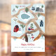Illustrations modernes de carte de Noël racontant une histoire avec des pins, des manchots, des patins à glace, un lac gelé, des maisons, des villages, une route, une montagne, un téléphérique, des skis, un bonhomme de neige et plus encore ! Ajoutez vos sentiments positifs, avec paix et amour, réjouissez-vous, joie, espoir, plus joyeux, chérissez, câlins....