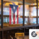 Fenêtre serrée avec le drapeau de Porto Rico dans le style de tissu ondulé. Ce design présente les couleurs du drapeau portoricain et un design avec un bel effet texturé de matériau de tissage. Ce design de drapeau est une excellente façon de vous montrer fier d'être de Porto Rico.