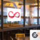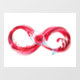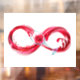 Infinity symbole of continuous stream of red pouring into glass glass glass on white background.