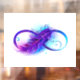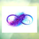 Infinity symbole with a beautiful feather painted in purple and blue bright colors on white background