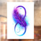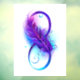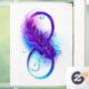 Infinity symbole with a beautiful feather painted in purple and blue bright colors on white background