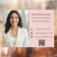 Autocollant de fenêtre d'entreprise moderne avec photo, informations de contact et code QR. Parfait pour les agents immobiliers, les salons, les boutiques et les bureaux. Facile à personnaliser avec votre propre marque pour créer un affichage de vitrine professionnel et accueillant. Fond rose blush, texte couleur taupe.