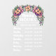 Autocollant charmant d'heures d'ouverture d'entreprise à motif floral avec une arche florale avec des fleurs folkloriques en pêche et violet et des polices mignonnes en blanc où vous pouvez ajouter vos heures d'ouverture, jour après jour, et le numéro de téléphone de votre entreprise.