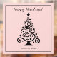 Autocollant Pour Fenêtre Joyeuses Fêtes Sapin de Noël noir sur fond rose cl