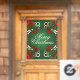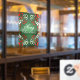 Elégant design personnalisé de cling de fenêtre de Noël avec un cadre baroque élégant avec effet découpé en papier sur un arrière - plan dégradé vert. Le texte est entièrement personnalisable.