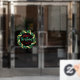 Magnifique marque de voeux de Noël de l'entreprise personnalisée pour les fêtes avec une jolie couronne de Noël et votre nom d'entreprise rouge sous la typographie or. Festive rouge monogrammed cling fenêtre pour les magasins de Noël.