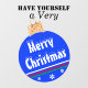 Joyeux Noël est écrit dans la police blanche enneigée. Boule d'ornement bleu vif et rond avec des accents de pois rouge, jaune rose, bleu, blanc. Oeuvre originale de TamiraZDesigns.