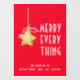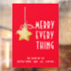 Autocollants de fenêtre de style moderne et minimaliste pour toutes sortes de bureaux, d'entreprises et de lieux de vente, avec une étoile rustique sur un ornement en forme de chaîne avec le texte blanc "Merry Every Thing" sur fond rouge. Personnalisez avec des informations supplémentaires