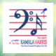 Kamala = virgule et la avec virgule représentée par la clef F ou clef basse et la note la qui en musique est normalement placée sur le premier espace (à partir du bas) et sur la première ligne (à partir du haut) du personnel de clef basse. La note la est représentée par la seizième note qui ressemble à un F et à une note de trimestre renversée qui ressemble à un P. La lettre F est pour les mots premier et féminin et la lettre P pour le mot président. Walz est écrit avec une huitième note à l'envers qui ressemble à un L. Les lignes rouges du personnel représentent les pointes rouges du drapeau américain. Les quatre étoiles représentent le symbole électoral du Parti Démocrate.
