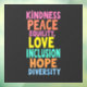 bonté, paix, égalité, amour, inclusion, espoir, diversité, message positif, conception de l'unité, art de l'inclusion, égalité pour tous, amour et espoir, monde diversifié, conception inspirante, mouvement de bonté, paix et harmonie, message social, vibrations positives, avenir plein d'espoir.