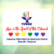 Dans un magnifique script rouge riche "L'amour est l'esprit de cette église" - Tennessee Valley Unitarien Universalist Church, Knoxville, Tennessee - avec 6 coeurs dans les couleurs arc-en-ciel de LGBTQ - également le logo de l'église, un chalet flamboyant - un design coloré qui est superbe partout, n'importe quand