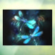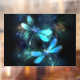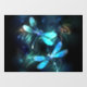 Deux libellules transparentes, lumineuses, turquoise, artistiquement dessinées sur l'arrière - plan de nuit avec des algues luminescentes et des lucioles. libellule éclatante.