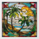 Autocollant Pour Fenêtre L'île tropicale au coucher du soleil Faux Verre te
