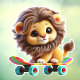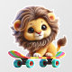 Cette image présente un adorable lionceau avec une crinière flottante, perché avec confiance sur un skateboard aux couleurs vives. Ses grands yeux expressifs et son sourire doux dégagent un charme ludique. Les rayures vibrantes de l'arc-en-ciel du skateboard ajoutent à l'ensemble gai et fantaisiste de l'image. Un mignon lionceau moelleux avec une crinière pleine et douce, à cheval sur un skateboard coloré. Le lionceau a une expression joyeuse, avec de grands yeux expressifs
