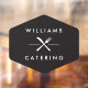 Un motif de style vintage comportant un design de fourchette et de couteau croisés associé au nom de votre entreprise devient un logo unique sur ce vinyle personnalisé pour fenêtre. Art et design © 1201AM Design Studio | www.1201am.com