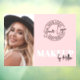 Autocollant de fenêtre pour maquilleurs modernes. Ce design élégant et stylé est parfait pour être exposé sur la vitrine d'un salon ou d'une suite. La partie supérieure comporte votre logo, avec le mot « MAQUILLAGE » en caractères blancs gras en dessous. Le nom en écriture cursive apparaît en noir dans le coin inférieur droit, lisant « par [Nom] » pour un look propre et professionnel.