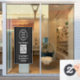 Élégant, moderne, élégant noir logo d'entreprise, fenêtre de code QR Cling. Parfait pour les affaires. Attachement de fenêtre promotionnel. Personnalisez-le avec vos détails.