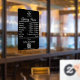 Un autocollant de fenêtre et un adhésif de fenêtre d'heures d'ouverture d'entreprise en noir et blanc avec le logo de l'entreprise, le code QR, vos icônes de médias sociaux personnalisés et les coordonnées. Un adhésif de fenêtre d'heures d'ouverture personnalisé parfait pour les vitrines et les panneaux de porte d'entrée. Parfait pour un propriétaire de magasin qui souhaite informer ses clients sur ses heures d'ouverture.
