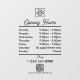 Un autocollant de fenêtre et un adhésif de fenêtre d'heures d'ouverture de l'entreprise en noir avec le logo de l'entreprise, le code QR, vos icônes de médias sociaux personnalisés et les coordonnées. Un adhésif de fenêtre d'heures d'ouverture personnalisé parfait pour les vitrines et les panneaux de porte d'entrée. Parfait pour un propriétaire de magasin qui souhaite informer ses clients de ses heures d'ouverture.
