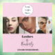 Autocollant de fenêtre de Studio de Maquillage - Police de caractères noire rose poudré Votre logo ici 3 Photo Entreprise de Cils avec nom et identifiant de réseau social.
