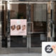 Autocollant de fenêtre de Studio de Maquillage - Police de caractères noire rose pâle Script Votre logo ici 3 Photo Entreprise de Maquillage avec nom et identifiant de médias sociaux