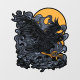 Illustration graphique d'un Corbeau noir effrayant avec la Lune derrière lui.