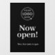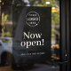 Autocollant Pour Fenêtre Maintenant Ouvert | Logo Noir des Heures d'Ouvertu