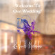 Une fenêtre s'accrochant dans un élégant texte blanc avec des oeuvres d'art florales dans les tons violets, transmettant votre message d'accueil mariage,. Message MineByDesign pour des designs personnalisés!