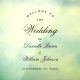 Tout le texte est noir. Le mot Mariage et les noms sont écrits dans un script calligraphique élégant, le reste en majuscules. Les mots "Bienvenue à" sont courbés en texte arqué au-dessus de tout.