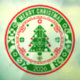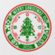 Modern Bauhaus-style Christmas design featuring a bold geometric tree in festive red and green.