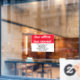 Cette adhésive de fenêtre rouge et blanche dit 'Notre agence a déménagé'. Utilisez le champ blanc pour personnaliser votre adhésive de fenêtre avec le nom de votre entreprise, votre nouvelle adresse et votre numéro de téléphone.