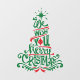 Un design festif et décoratif de typographie de vitrines en forme d'arbre de Noël qui dit "nous vous souhaitons un joyeux Noël" en anglais. L'arbre est en rouge et vert et a des tourbillons décoratifs près de la base et une étoile de Noël au sommet. Idéal pour les amis qui le souhaitent ; famille ; clients et clients une période de fêtes festives. Modifiez les couleurs à l'un de vos choix.