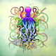 Imaginaire de pieuvre psychédélique et luminescente Art. Fantastique monstre océanique créé à l'origine sur Vector Graphic Art Technique. Copyright BluedarkArt.
