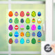 30 oeufs de Pâques différents et colorés sur un Cling de fenêtre.