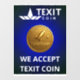Official Logo TexitCoin We Accept Texit Coin Window Cling Dark Blue with Bright White Letters and Gold Coin